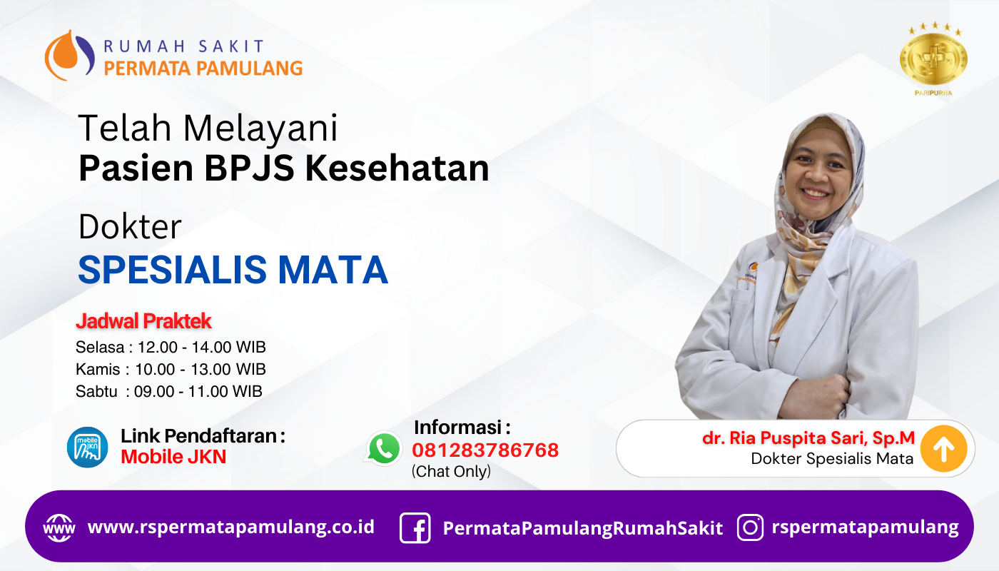 Telah bergabung bersama kami dokter spesialis mata dr. Ria Puspita Sari, Sp. M dengan jadwal praktek sbb :Selasa : 12.00 – 14.00 WIBKamis : 10.00 – 13.00 WIBSabtu : 09.00 – 11.00 WIB Untuk pendaftaran, silahkan klik laman okdc.me/rsperpam atau untuk informasi lebih lanjut silahkan menghubungi kami di 081283786768 (chat only).
