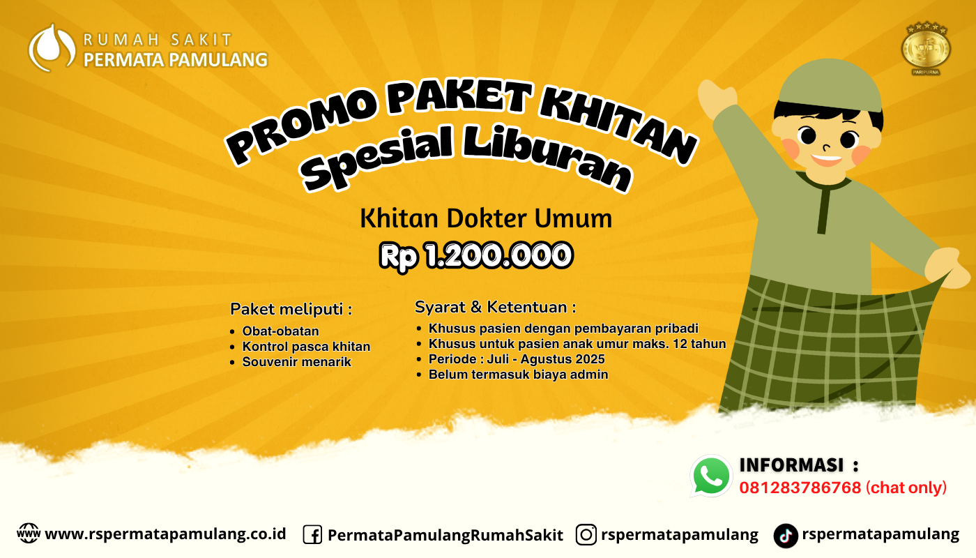 Nikmati layanan kesehatan kami di hari Minggu, 27 Juli 2025 dengan layanan dokter spesialis anak, spesialis penyakit dalam, spesialis kandungan & kebidanan, dan poliklinik gigi.Untuk pendaftaran bisa klik link : okdc.me/rsperpam atau silakan hubungi bagian pendaftaran kami di no. 081283786768 (chat only)