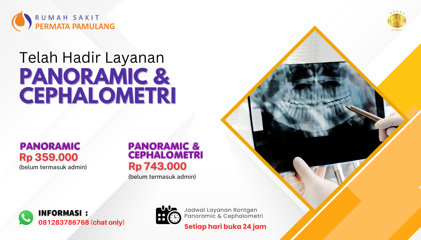 Senyum Sehat Dimulai dari Diagnosa Tepat!Tahukah Anda? Pemeriksaan gigi dan rahang kini semakin akurat dengan Rontgen Panoramic & Cephalometri di RS Permata Pamulang..Rontgen Panoramic :Menampilkan gambaran seluruh gigi, rahang, dan struktur pendukungnya dalam satu foto.Membantu dokter mendeteksi gigi berlubang, gigi impaksi, kista, hingga masalah tulang rahang. Rontgen CephalometriDigunakan khusus untuk analisis bentuk dan posisi rahang […]